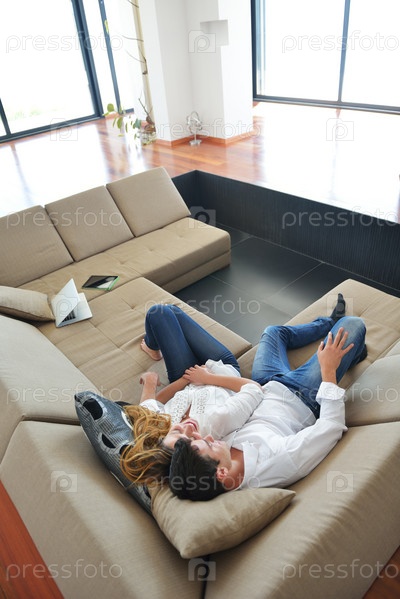Молодая пара отдыхает дома