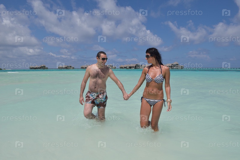 Счастливая молодая пара на пляже