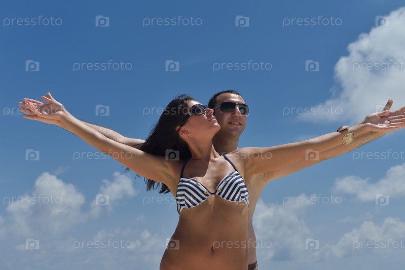 Счастливая молодая пара на пляже
