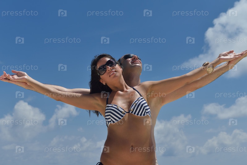 Счастливая молодая пара на пляже