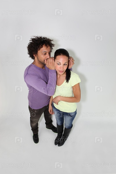 Мужчина шепчет секрет молодой женщине