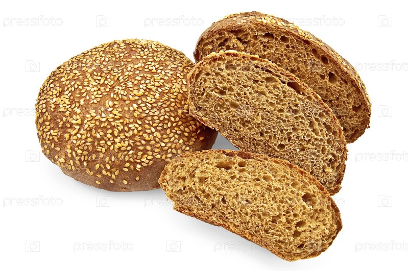 Булочка с кунжутом на белом фоне