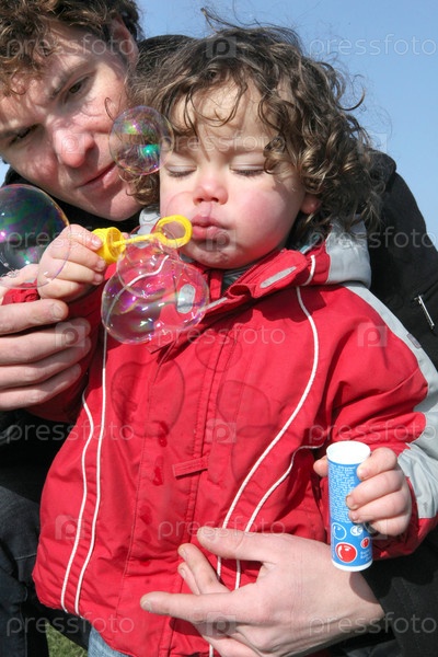 Очаровательный малыш пускает мыльные пузыри