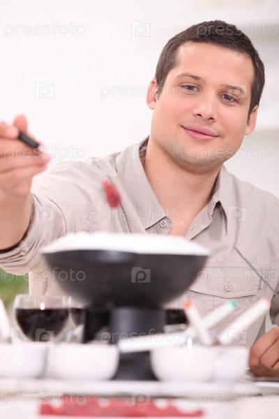 Молодой мужчина с фондю