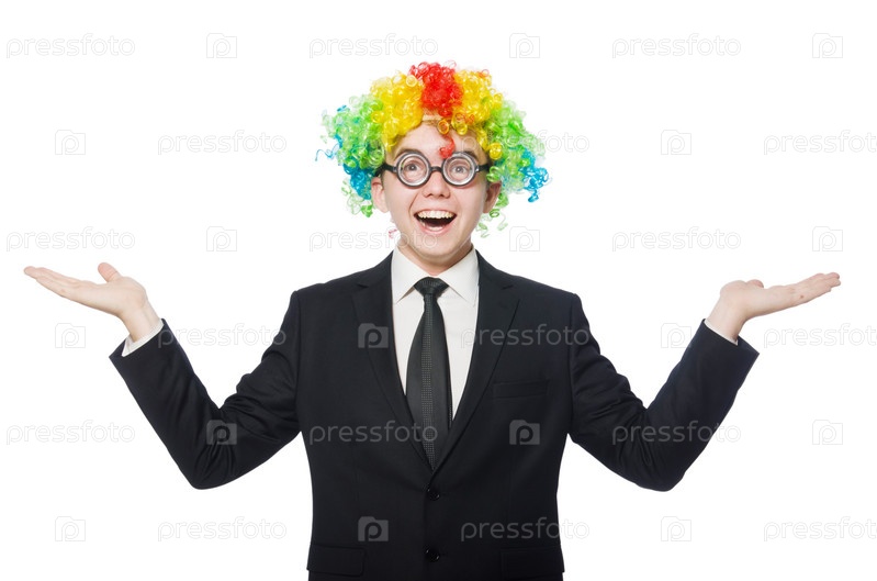 Бизнесмен в парике клоуна