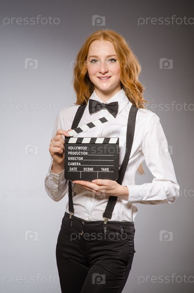 Молодая женщина с кинохлопушкой