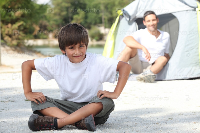 Отец и сын в кемпинге