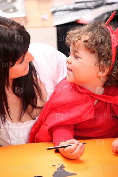 Мать с сыном в костюме дьявола