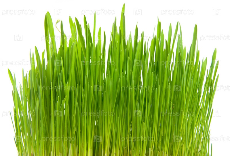 Зеленая трава на белом фоне