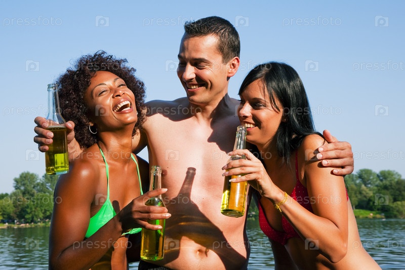 Мужчина и две женщины на пляже