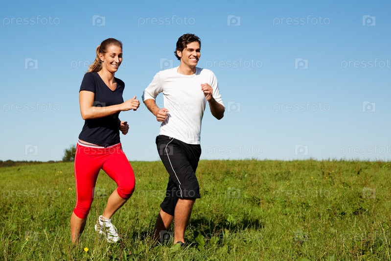 Пара бегает на природе