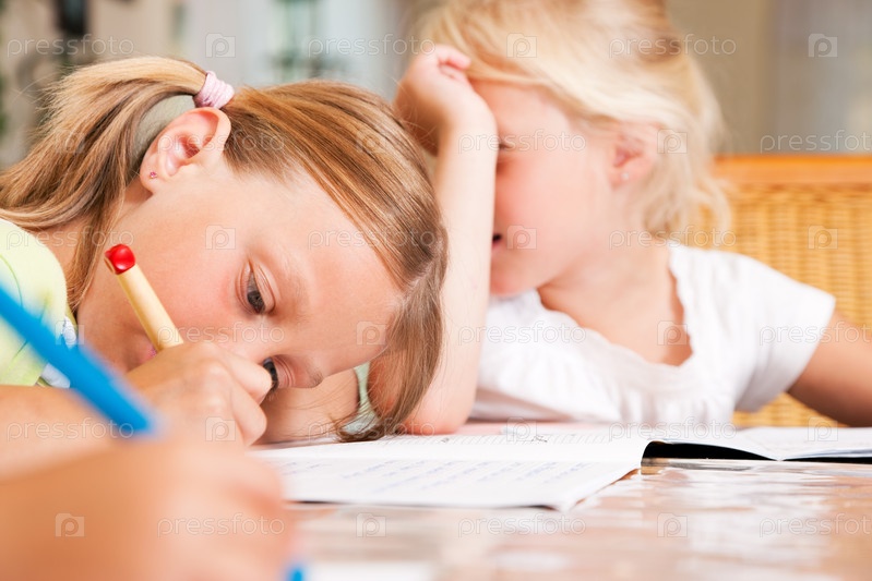 Девочка делает домашнее задание
