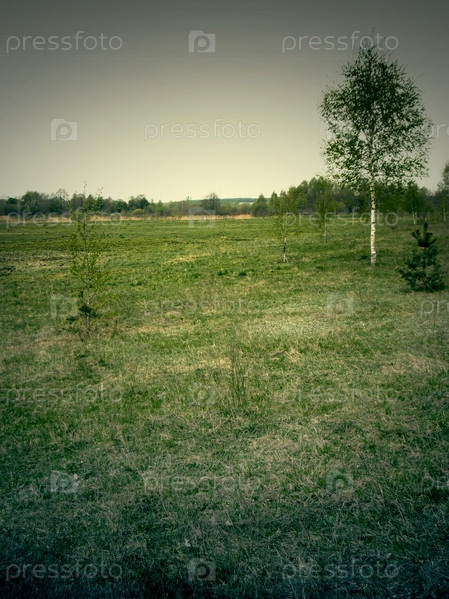 Береза на лугу