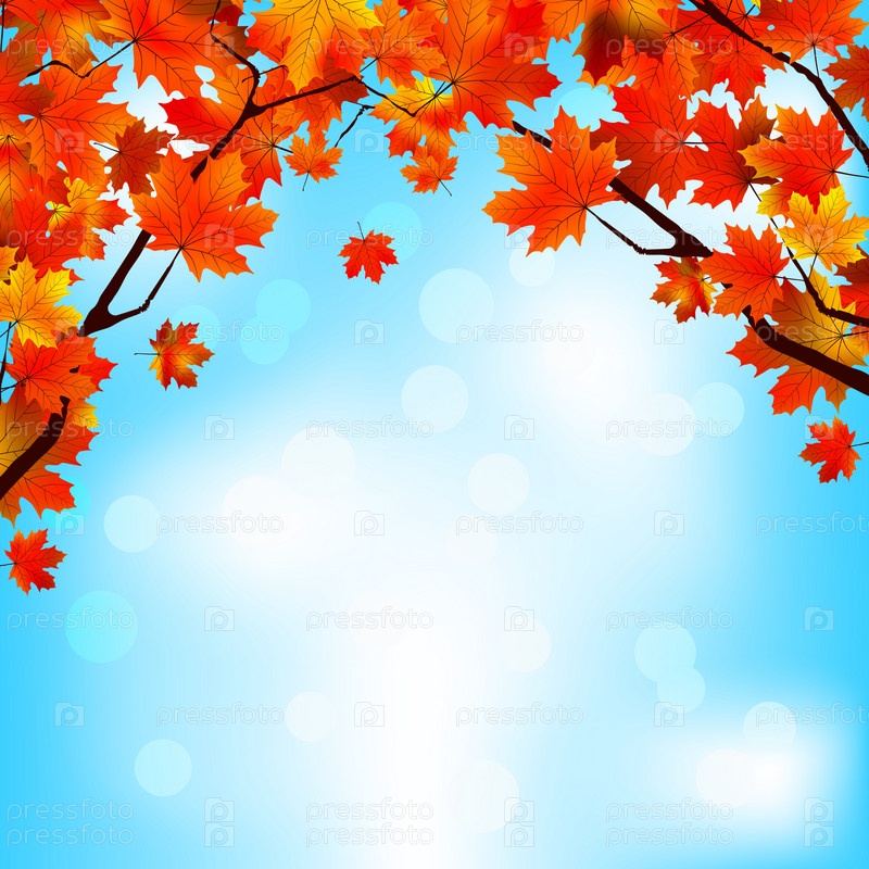 Красные и желтые листья на фоне неба. EPS 8