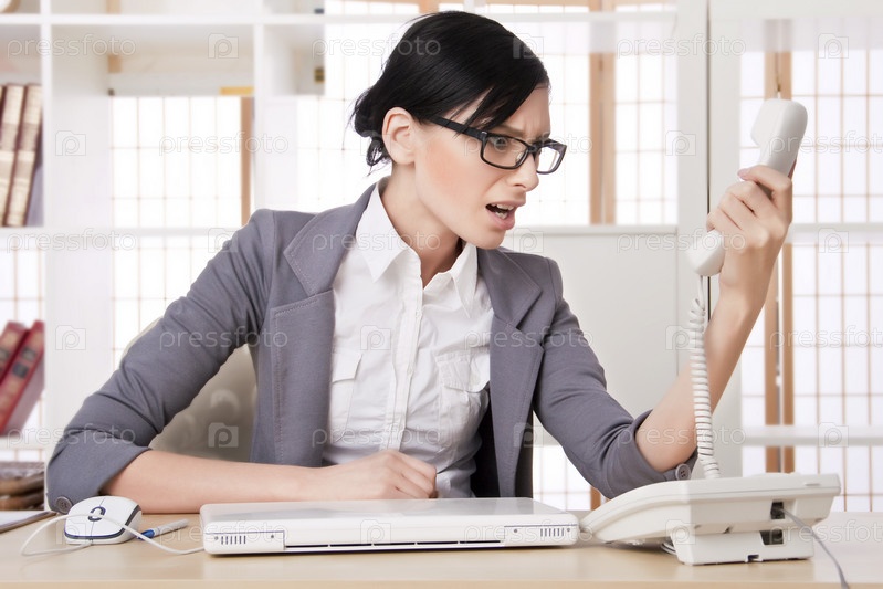 Раздраженная деловая леди с телефоном