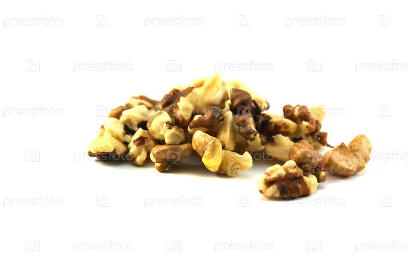Очищенные грецкие орехи на белом фоне