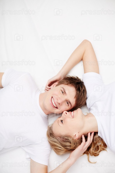 Пара лежит на белом фоне