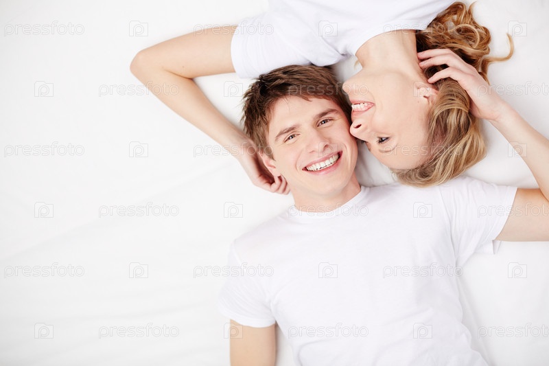 Пара лежит на белом фоне