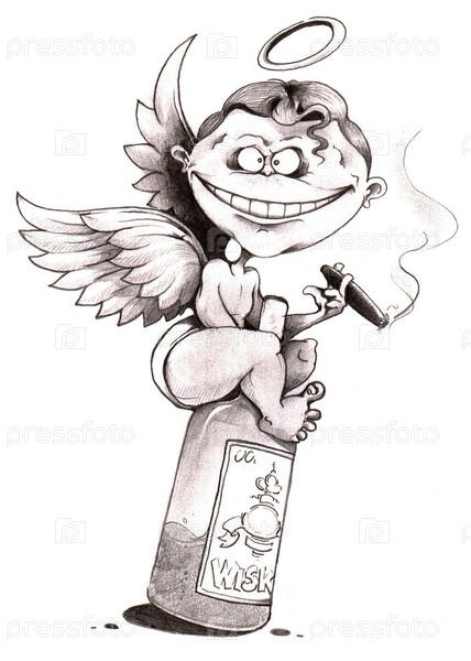 Ангел с сигарой сидит на бутылке
