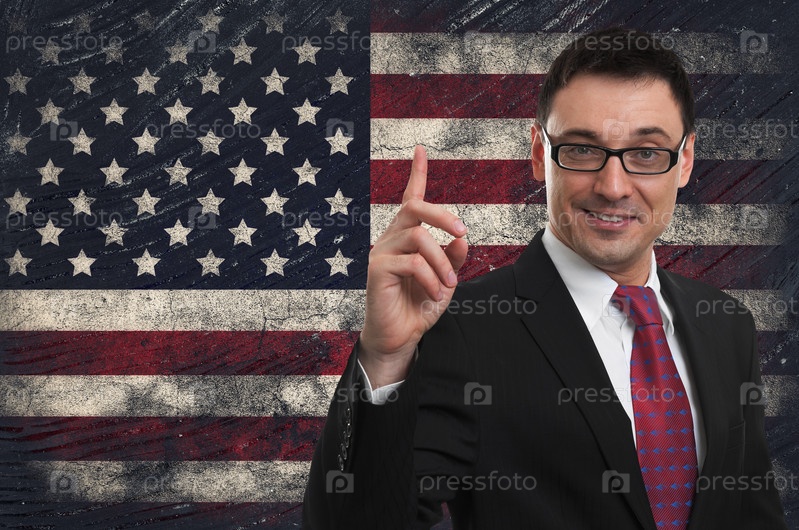 Флаг США и красивый бизнесмен