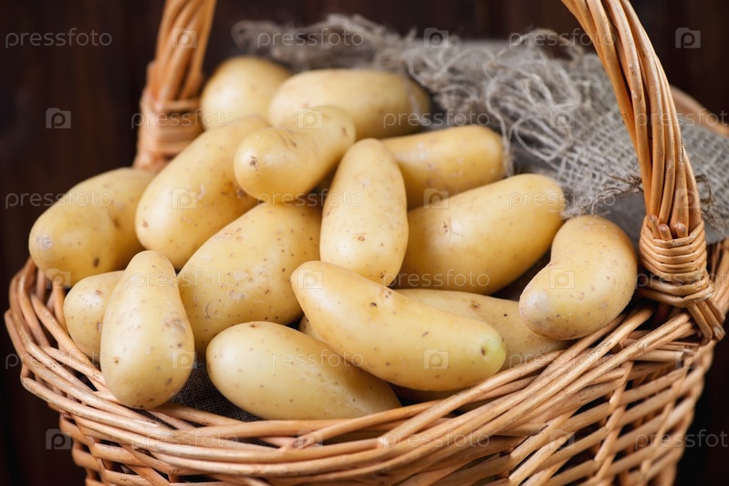 Плетеная корзина с сырым картофелем