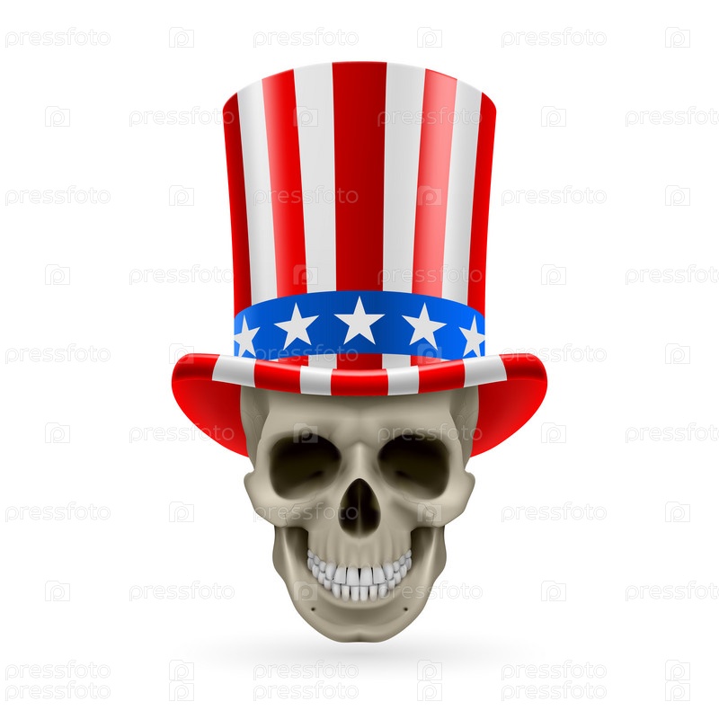 Череп в шляпе с американским флагом
