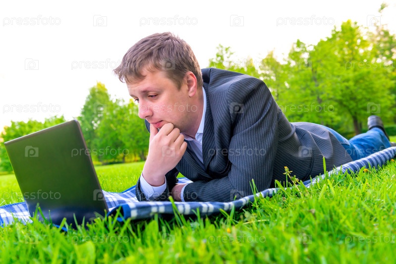 Бизнесмен работает на ноутбуке