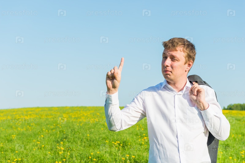 Бизнесмен показывает пальцем вверх