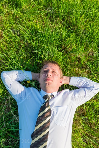 Бизнесмен отдыхает в поле