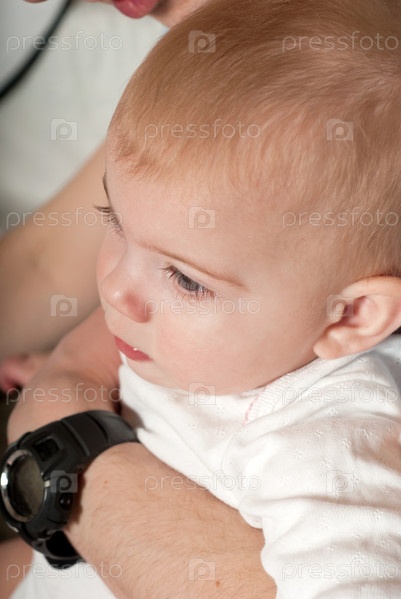 Портрет маленькой девочки, сидящей у родителей на руках
