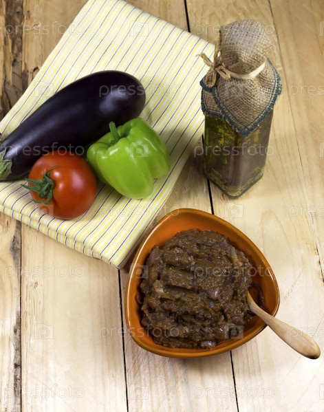 Икра из баклажанов в оранжевой миске