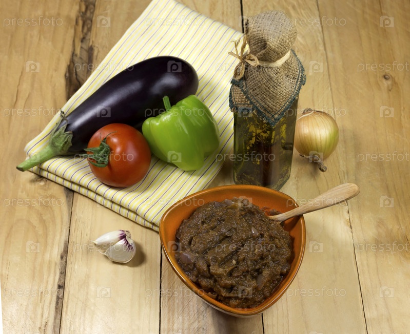 Икра из баклажанов в оранжевой миске