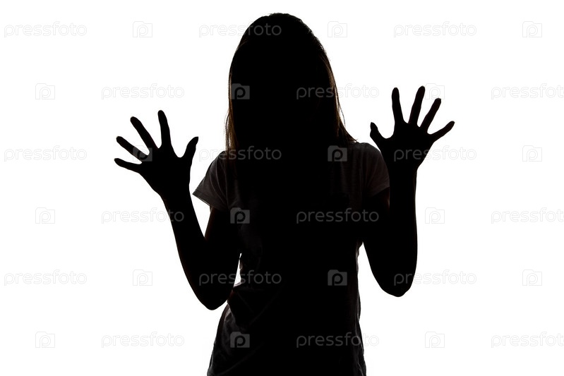 Силуэт девушки с поднятыми ладонями