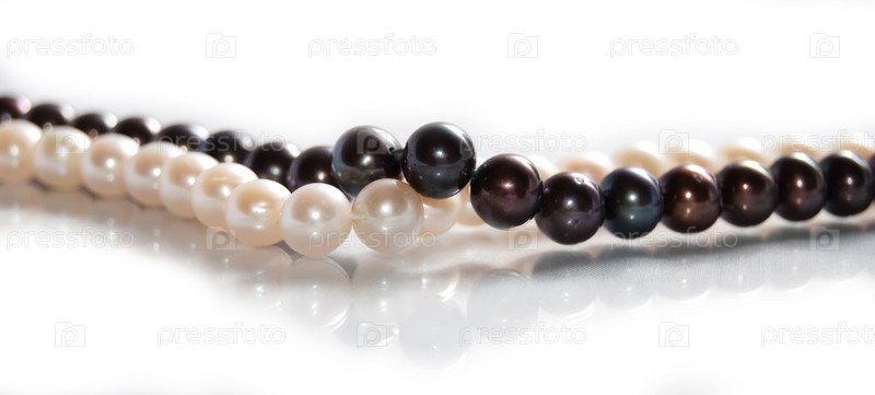 Две цепи из пресноводных жемчужных ожерелий, на белом фоне