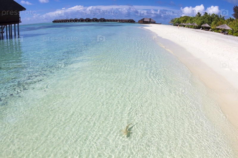 Акула на пляже. Мальдивские острова