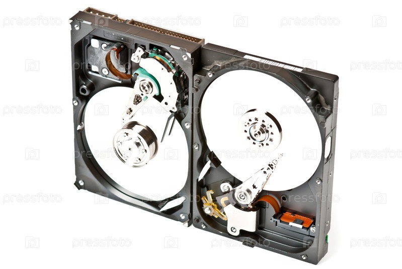 Два открытых жестких диска на белом фоне