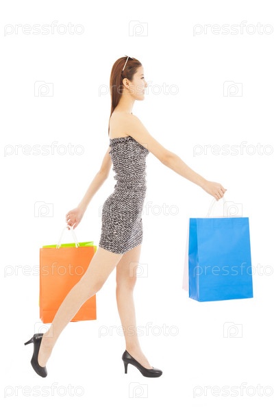 Счастливая молодая женщина с покупками