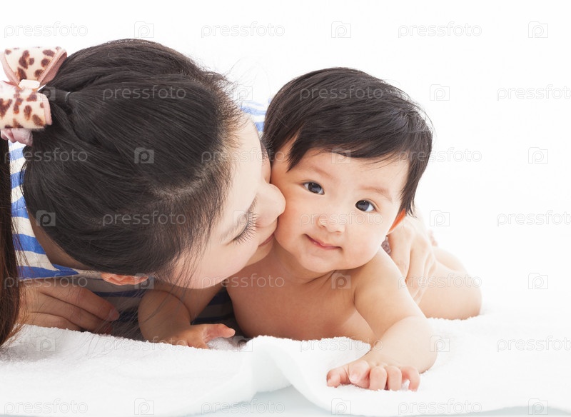 Счастливая мать целует ребенка