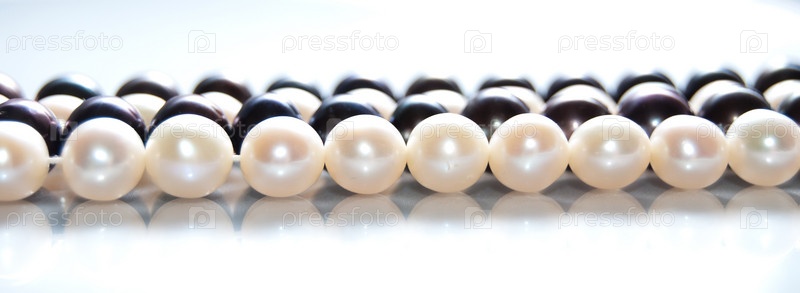 Две цепи из пресноводных жемчужных ожерелий, на белом фоне