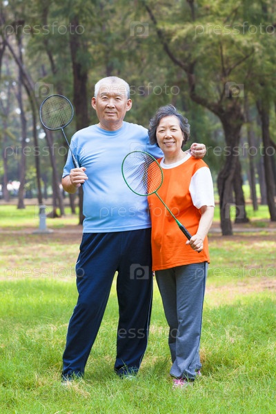 Пожилая пара играет в бадминтон