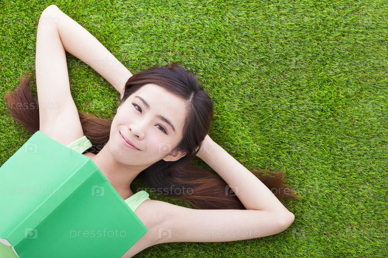 Девушка лежит на газоне