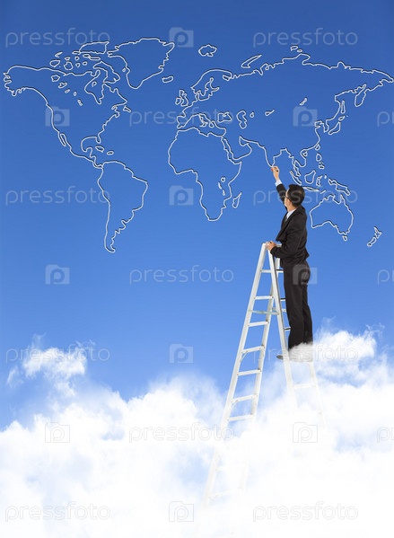 Деловой человек на стремянке