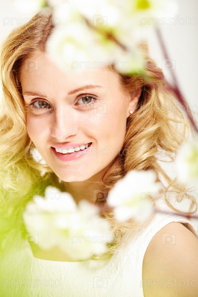 Портрет красивой молодой женщины среди цветов