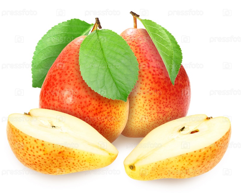 Свежие груши с зелеными листьями