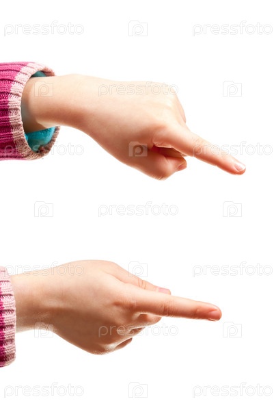 Детские руки указывают направление на белом фоне