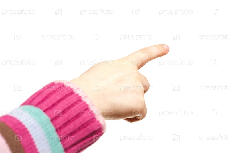 Детская рука указывает направление на белом фоне