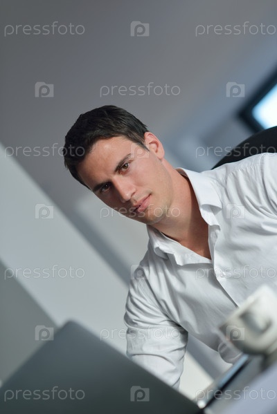Деловой мужчина за компьютером дома