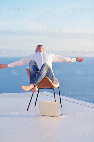 Молодой мужчина отдыхает на балконе