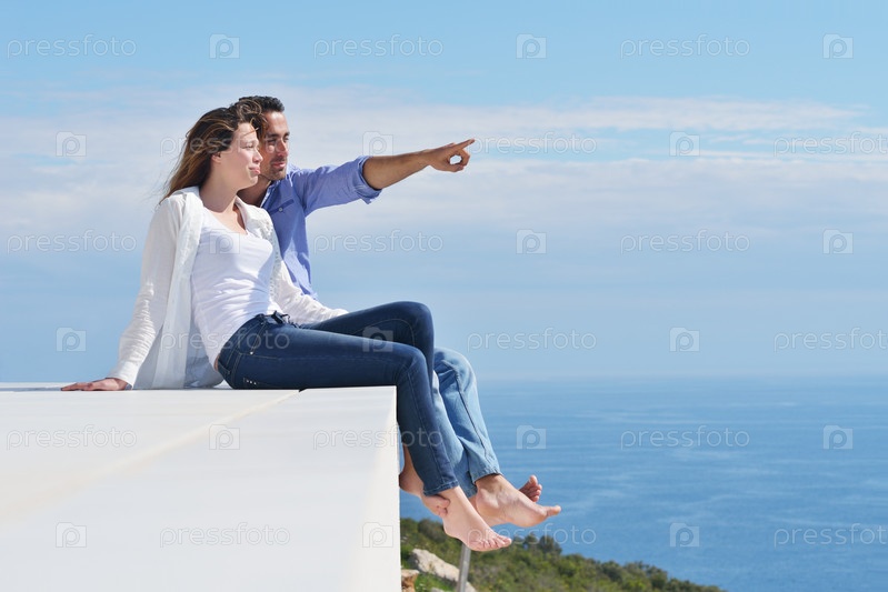 Счастливая пара отдыхает на берегу