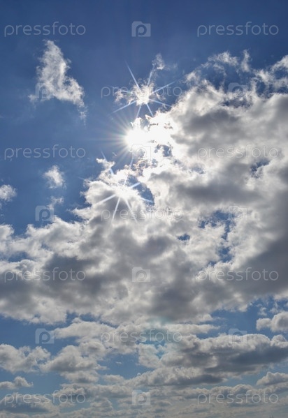 Небо с облаками и солнечными бликами
